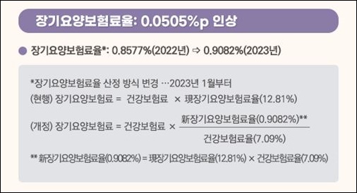 장기요양보험료 = 건강보험료(변경될 수 있음) 예를 들어 건강보험료가 10만원이라면 장기요양보험료는 10만원×12.27%=12,270원이다. 이 금액은 매월 건강 보험료와 함께 청구됩니다.2. 개호보험료 부담의 필요성