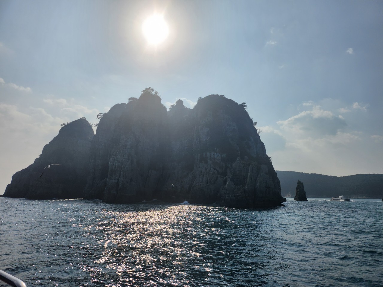 햇살이 내리쬐는 섬의 풍경이 아주 좋습니다.