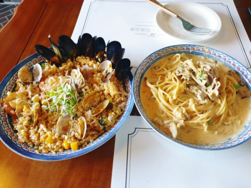 여러 종류의 파스타와 리조또를 판매하고 있었습니다.상하이 빠에야도 너무 궁금했어요.