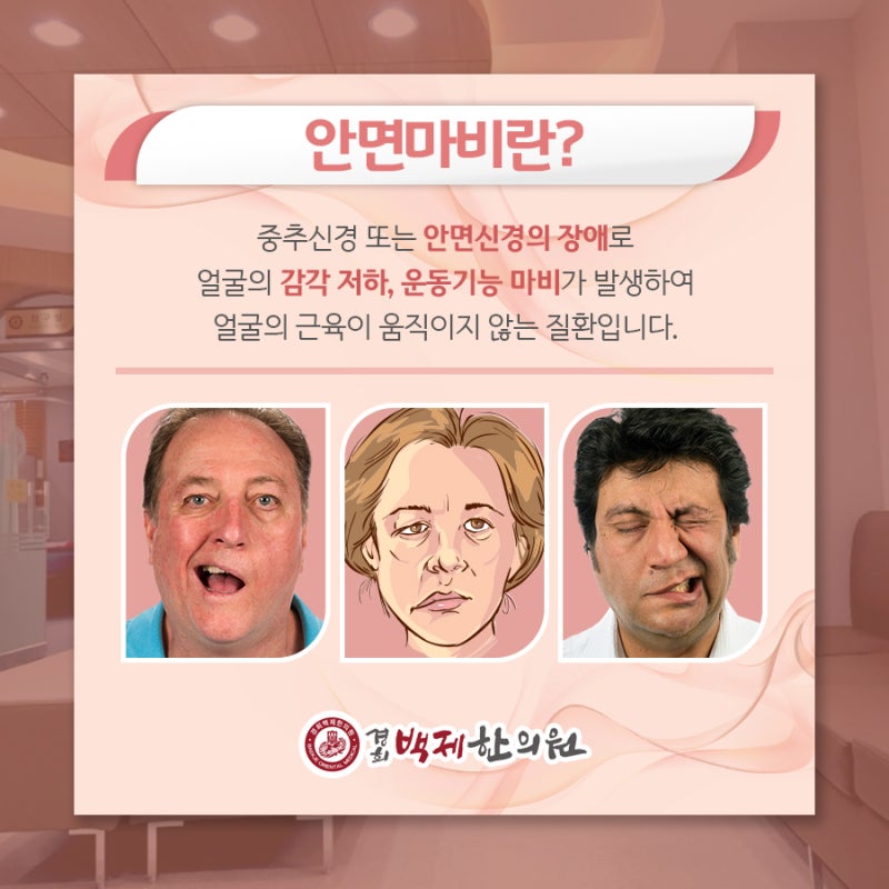 따라서 이러한 질환이 발생한 경우에는 길음역 안면마비 한의원 구안와사와 함께 고려할 수 있는 한방병원을 방문하여 검사를 받은 후 진료를 하는 것이 좋습니다. 이런 질환들은 얼굴 한쪽에만 찬바람을 맞거나 그 외에도 다양한 찬 공기에 의해서 발생할 수 있습니다. 심한 피로감이나 스트레스가 원인인 경우도 있고 신체의 면역력이 저하되어 나타날 수 있습니다.