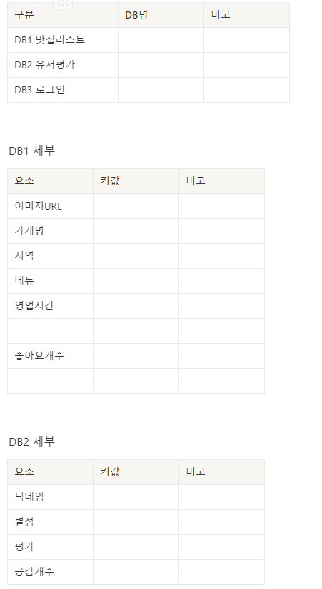 세부 DB 설계를 위한 대략적인 초안을 작성했습니다.