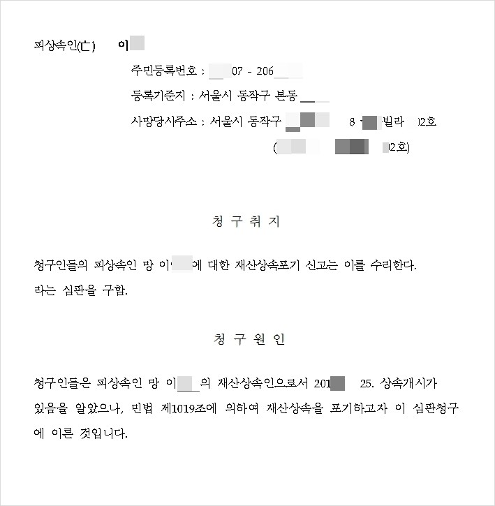상속포기심판청구서의 불이익 해소를 위해서라면!