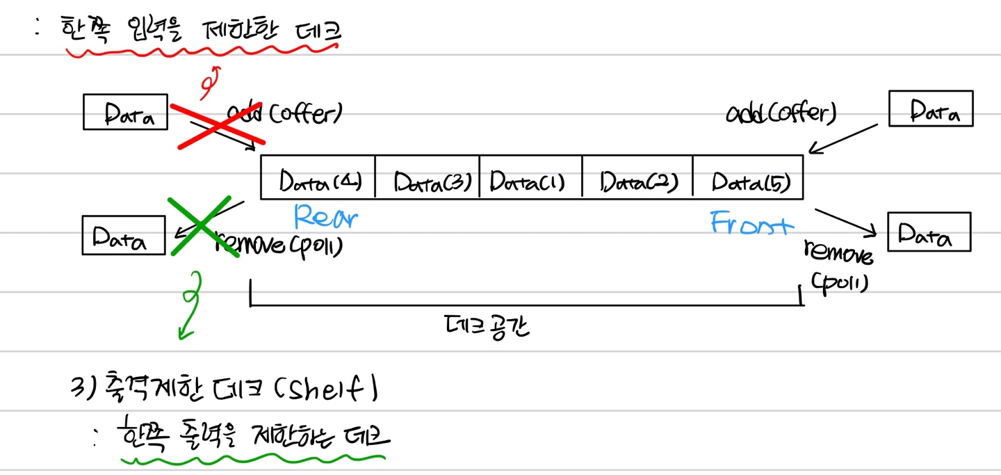- 양쪽에서 삽입 및 삭제할 수 있는 데이터 구조