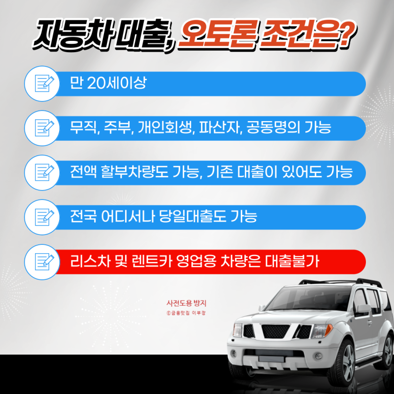 실업자자동차대출 DSR 보장조건에 따른 요건을 확인해보세요!
