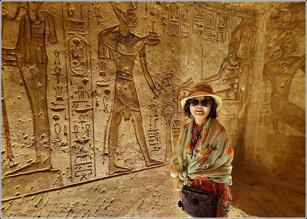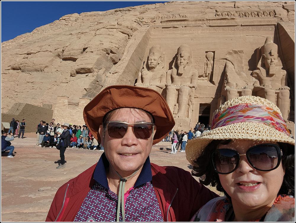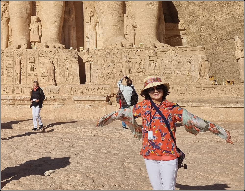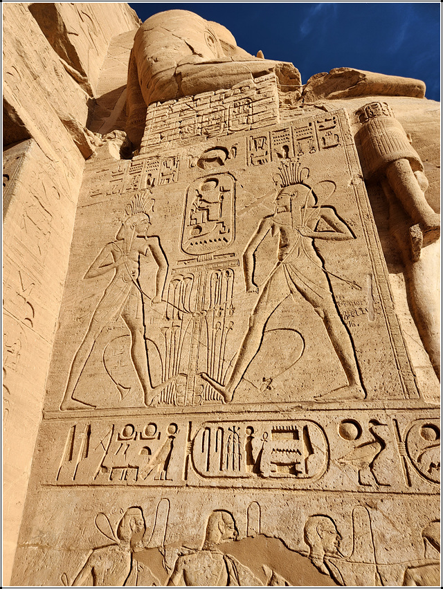 입구에는 각각 22m 높이의 람세스 2세의 좌상 4개가 있습니다.