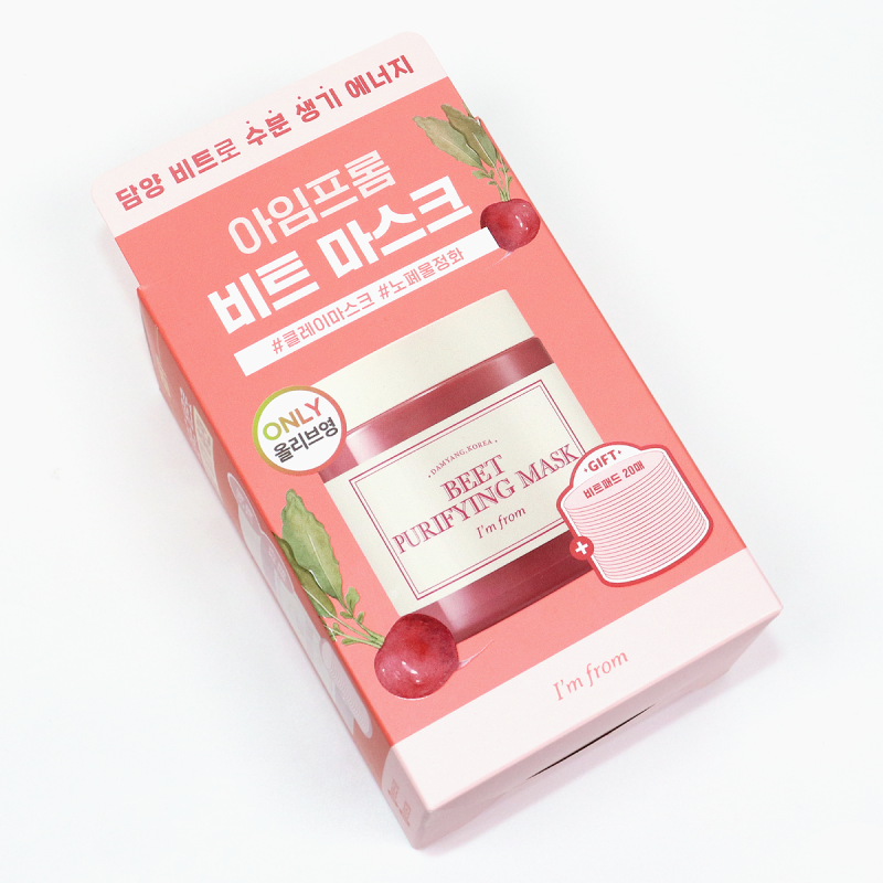 마침 5월에 올리브영 세일에서 만날 수 있습니다.제가 보여드릴 기획세트는 5월 한 달간 28% 할인된 20,000원에 구매 가능합니다.5월 1일~5월 8일 기간 동안 온라인몰 단독 기획전 세일로 무려 30% 세일이 진행되어 19,400원에 얻을 수 있습니다.게다가 이 기간에 구매하시는 분들께는 한정수량으로 비트 리프레쉬 패드 2매입+피그 스크럽 마스크 30g도 드릴테니 사용해보고 싶으시면 이 기간에 만나보시는게 좋을 것 같아요!펴서 바르면 알갱이를 볼 수 있어요. 저는 이 알갱이가 있어서 피지와 피부결 정리에 더 도움이 될 것 같아요. 씻으면서 자연스럽게 문지르니까요! 그렇다고 자극적이지는 않아서 더 좋았어요!오픈해보시면 핑크색 컬러를 보실 수 있습니다. 원물 그대로 갈아낸 레드비트 효소 가루가 모공 속 노폐물과 피지를 분해해 준다고 합니다. 피지 고민이 있으신 분들은 모공 고민도 같이 가지고 계신 분들 많으실 텐데요. 모공 관리는 더 이상 퍼지지 않게 하면서 눈에 띄지 않게 피지를 제거하는 게 중요하잖아요. 같은 크기의 모공이라도 피지로 채워져 검게 보이면 더 돋보이니까요. 그래서 이 제품 모공 관리를 하려는 분들 만나보셔도 좋을 것 같아요.이번에 만난 비트퓨리파잉 마스크는 얼굴 피지를 제거할 수 있기 때문에 요즘 같은 날씨에 저처럼 지복합성 피부를 가지신 분들이라면 분명 만족스럽게 사용하실 수 있을 것 같습니다.(*올리브영 21년 1월~12월 누계 매출액 기준)텍스처는 쫀득쫀득한 클레이 타입인데요.보통 이런 클레이 마스크팩은 바르고 있으면 서서히 말라가면서 얼굴을 확 잡아당기는 느낌이 들어서 건조함이 같이 느껴지기도 합니다.레드비트의 유효성분을 10배 이상 극대화한 아임프롬 자체 개발성분 ‘레드비트 효소가루’를 72시간 동안 클레이를 숙성시켜 수분 보유력을 극대화한 ‘레드비트 효소 크렐로’ 수분도 더할 수 있다고 합니다.날씨가 따뜻해지면 피지와 모공이 기승을 부리네요(눈물). 왜 점점제 모공은 존재감이 커지는지 모르겠어요. 그래서 그런지 요즘은 메이크업도 잘 안 받는 것 같아요. 피부가 뭘 발라도 토해낼 것 같을 때는 얼굴 피지 제거가 필요한 시기라는 거 아시죠? 매끈하게 각질과 피지 관리를 해주면 예전에 바르던 제품 또한 잘 먹는 경험을 저도 여러 번 했습니다.그래서 올리브영 세일에 얻을 수 있는 아임프롬 비트퓨리파잉 마스크로 저도 얼굴 피지를 제거해 보기로 했어요!크림제제라서 매끄럽게 바르기 쉬웠는데요. 10~15분 정도 기다렸다가 씻어내면 된다고 합니다. 이때 제제가 완전히 마를 때까지 기다리지 마세요! 저는 보통 10분 정도면 충분하다고 생각하기 때문에 10분 후에 씻어내고 있습니다.이렇게 아임프롬 비트퓨리파잉 마스크를 써봤는데요. 일단 클레이 마스크팩인데 쓰고 나서 얼굴이 당기고 건조해지는 느낌이 없어서 다행이에요. 전체적으로 얼굴에 생기가 더해져 촉촉함이 남는 것 같았습니다.무엇보다 좋은 건 과도한 피지를 잡아주는 이 부드러운 느낌![주현영 PICK] 아임프롬 비트마스크 110g기획(+비트패드20매) 대한민국 NO.1헬스&뷰티스토어 OLIVEYOUNGwww.oliveyoung.co.kr이때 씻으면서 저는 얼굴 피지 제거를 집중적으로 해주고 싶은 곳을 가볍게 롤링해주기도 합니다.:)이렇게 사용하면 비트원물입자들 덕분에 물리적 각질제거도 가능할 것 같습니다.평소에 물리적 각질 제거 방법을 써도 괜찮으셨던 분들은 저처럼 써보셔도 될 것 같아요.손에 힘을 주고 문지르지 않고 가볍게 롤링한다!!평소 피부가 매우 예민하신 분들은 부드럽게 녹이듯 씻어주기만 하면 좋습니다!이 제품은 제가 사용하는 얼굴 전체에 바르는 방법 외에도 스팟 트리트먼트로 사용하거나 클렌저와 섞어 사용하는 등 활용도가 다양한 제품이거든요.그래서 하나 정도 가져오시면 될 것 같아서 마스크팩 추천드려요.본 게시물은 해당 브랜드의 제품 및 소정의 원고료를 지원받아 직접 체험한 후 주관적으로 작성된 리뷰입니다.제가 요즘은 스킨케어를 가볍게 하는 편인데 이렇게 얼굴이 번들번들하더라고요. 특히 코 부분은 모공도 넓고 블랙헤드도 눈에 띄는 상태이기 때문에 거울을 볼 때마다 이게 스트레스였어요. 비트퓨리파잉 마스크를 사용한 후 과잉 피지를 억제하면서 전체적으로 피부결을 정돈하는 느낌이 너무 상쾌하더라구요:) 저는 주 2~3회 꾸준히 사용하게 될 것 같아요! 게다가 한톤 깨끗해진 피부까지 눈에 띄게 느껴지기 때문에 저는 주 2~3회 꾸준히 사용해주시면 얼굴이 하얗게 변하는 방법에도 좋을 것 같아요.사용하실 때는 주 2~3회 사용하시면 됩니다.세안 후 물기 없는 얼굴에 발라주세요!비트 원물 입자가 있는 클레이 팩이지만 고수분&저자극 크림 클레이 텍스처를 가지고 있으며 베타카로틴 성분으로 피부를 진정시켜주기 때문에 민감한 사람들도 부담없이 사용해 보실 수 있을 것 같습니다.민감하신 분들은 씻을 때 얼굴을 세게 문지르지 않도록 합니다. 부분만 신경써주시면 될 것 같아요.