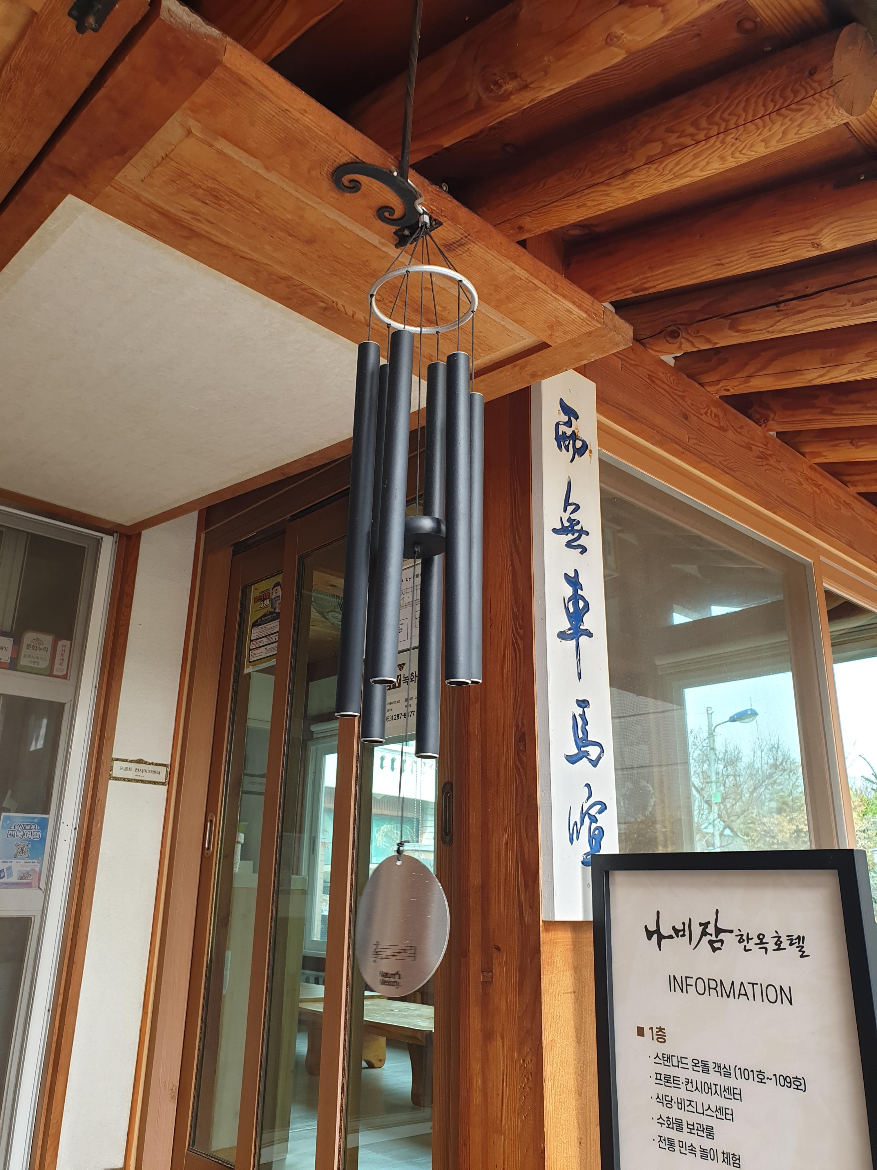 그리고 사장님이 우리를 맞이하러 나오자 머리 위에서 맑은 소리가 들리고 고개를 들어 풍경을 보았다.
