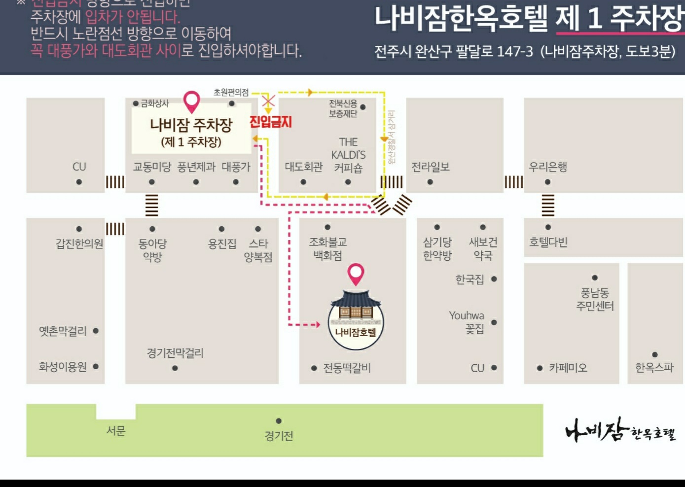 주차를 하고 전주한옥마을 나비잠호텔에 도착했습니다.