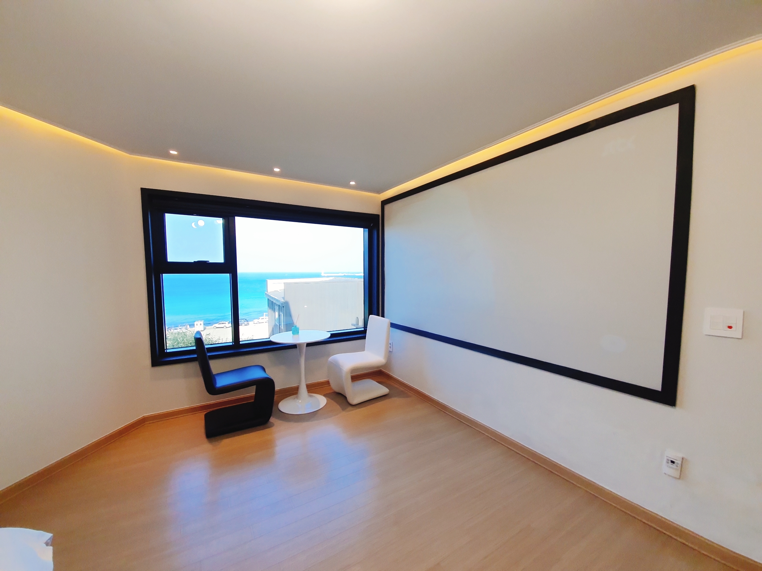 바다가 한눈에 보이고, 거실에서 보이는 뷰가 정말 아름답습니다.