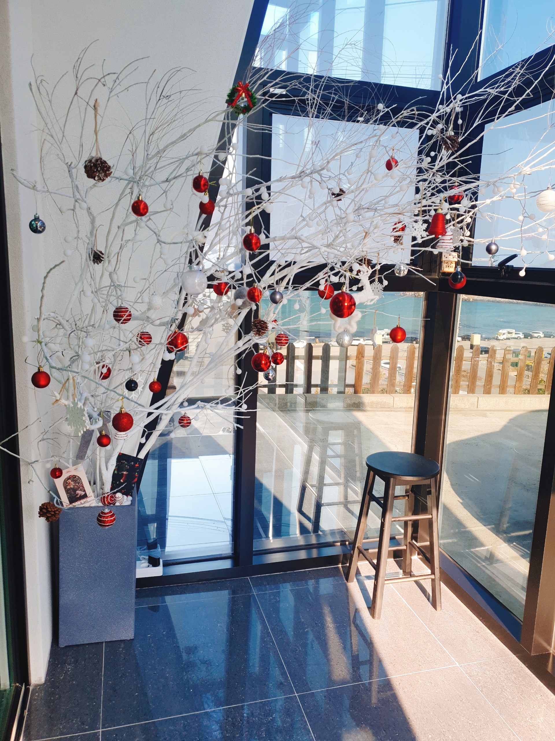들어가자마자 크리스마스 트리 장식이 눈에 들어왔어요.