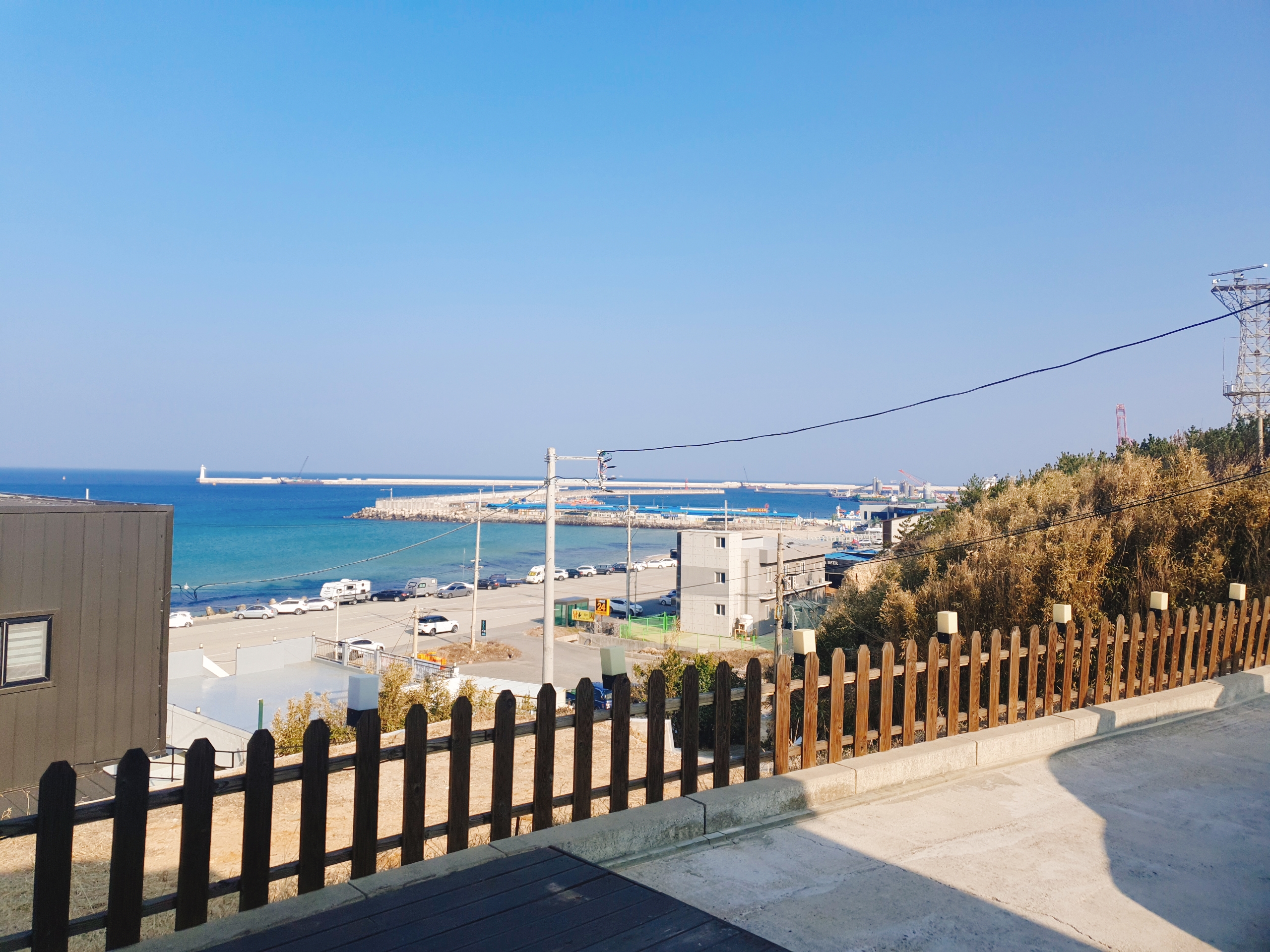 원래 소원 민박은 탁 트인 바다가 보이는 곳이었는데 이번에 갔을 때 그 앞에 선적 컨테이너가 있었다.