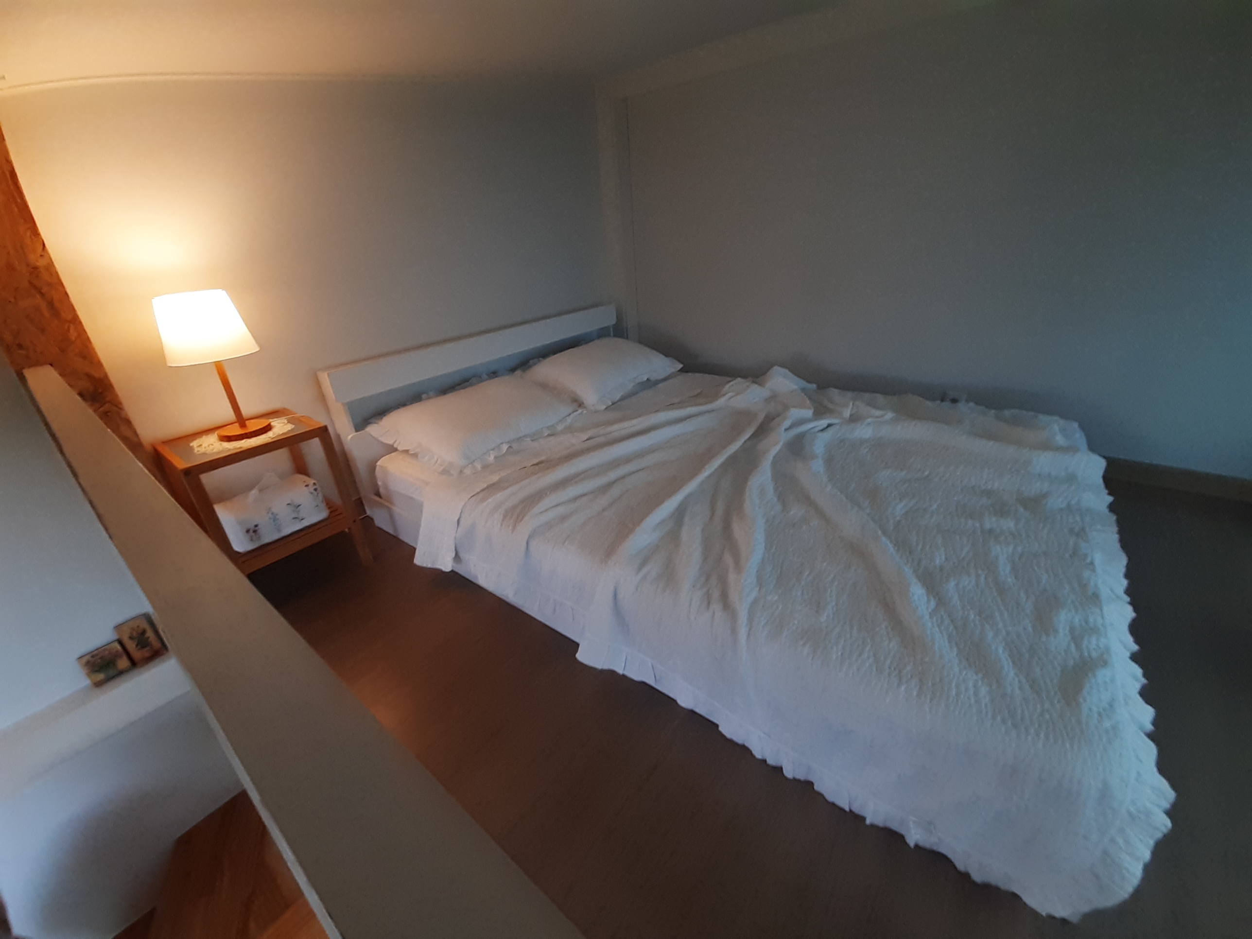 소원민박은 1층과 2층으로 나누어져 있는데 1층에는 꽤 큰 침실과 주방, 거실이 있고 2층에는 침실이 있다.