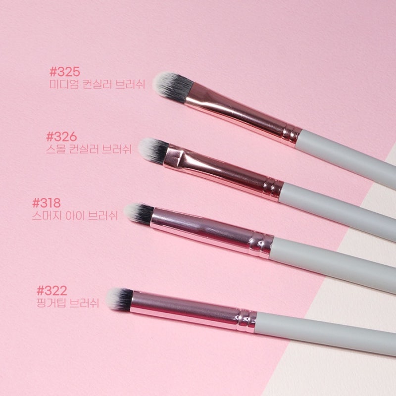 총 4개의 브러쉬가 들어있으며 318탄 브러쉬: 립라인 스머징용 322핑거팁 브러쉬: 블렌딩용 326 컨실러 브러쉬: 촉촉한 제형 립용 325 컨실러 브러쉬: 립라인 잡티용의 대체적인 용도는 이렇네요:)